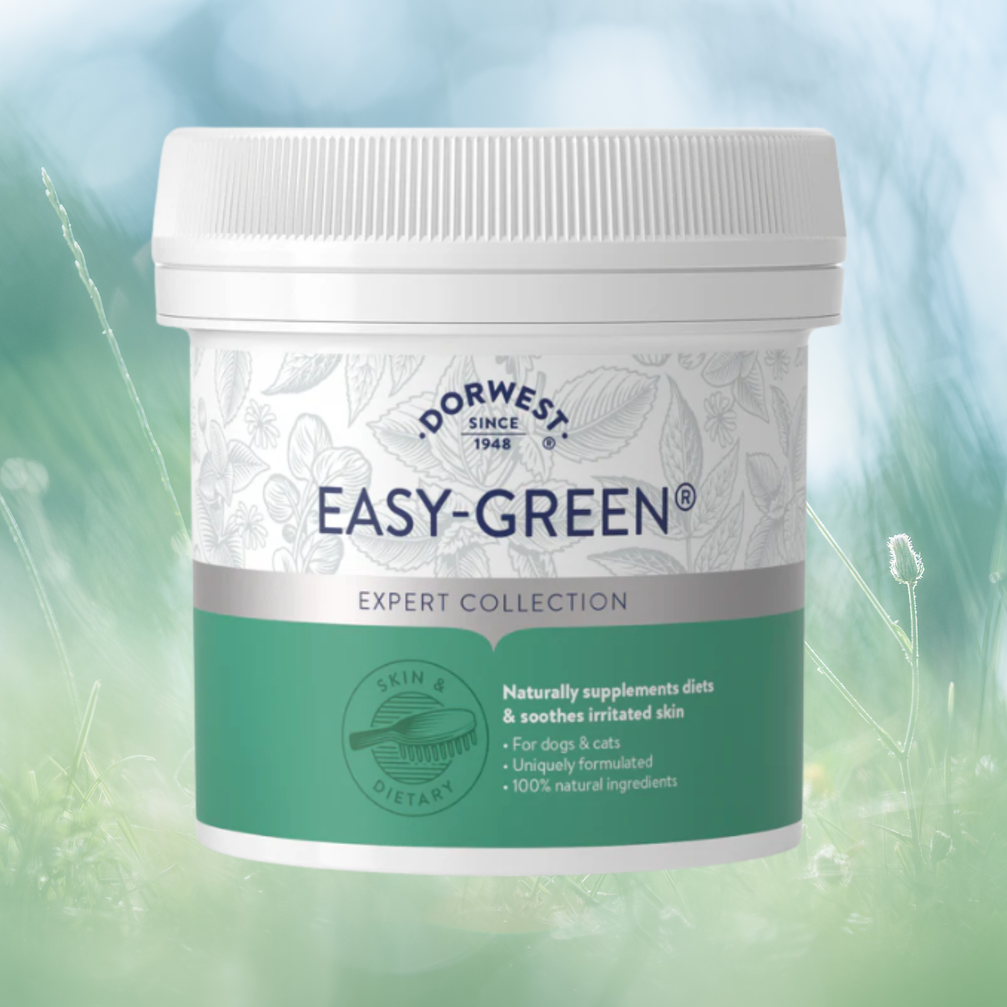 Our Easy Green Powder supplement has all the power of `super-greens` in an easy-to-give powder. Just add to your pet`s normal food for them to get all the benefits of eating a bowl of greens, without a spinach leaf in sight! The quick air-drying process retains maximum nutrients in a digestible form to naturally boost levels of iron, vitamin C, chlorophyll, calcium, magnesium and antioxidants (to neutralise free radicals) for all-round health. For pets with hot, itchy skin, our Easy Green Powder also has cooling properties.