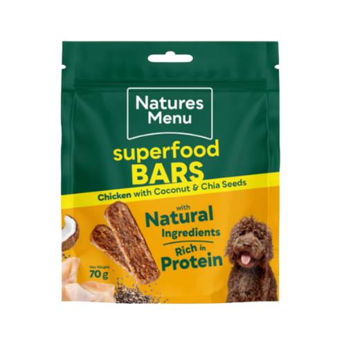 Superfood bars use quality chicken pieces and a natural blend of coconut and chia seeds plus other wholesome vegetables for a nutritious and rich in protein snack.