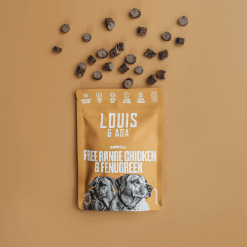 Named after the founders of Naturaw – Louis & Ada. Exquisite training treats made with free range british chicken and fenugreek, a herb packed with vitamins and minerals that’s also great for aiding digestion. We craft into irresistible bite sized morsels and gently dry before putting in a plastic free bag. It sounds pretty easy really, but you would be surprised how many others manage to make a right ol’ dogs dinner of it by using unethically sourced meat from half way around the world, or adding a load of processed nonsense our beloved dogs shouldn‘t be consuming.